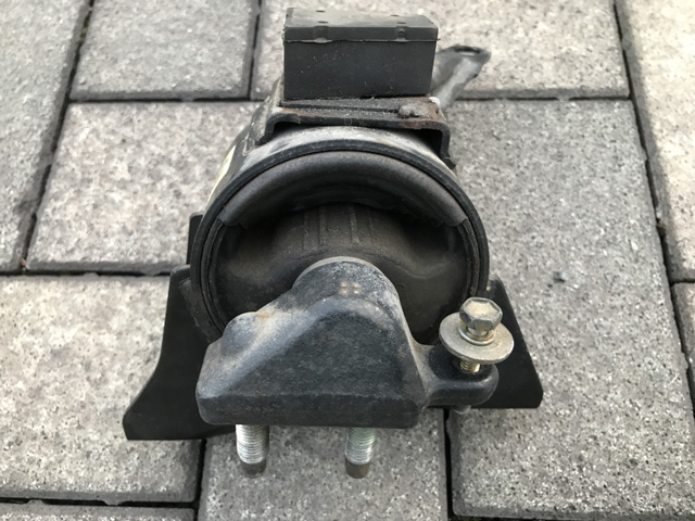 交換したBのマウント。品番は12305-16100 これで振動はなくなりました。ということでCは交換していません。Cの部分もちぎれてはいないようでしたし、ここがAE111のものを流用できるかどうか保証はないので…… |