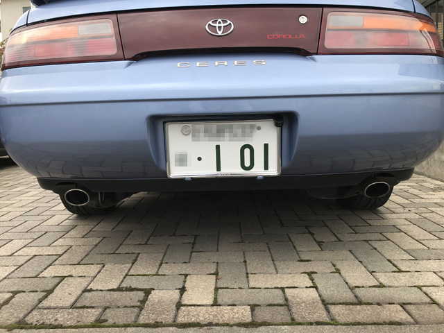 ナンバーはAE101にちなんで101に。 4A-GE型エンジンのため、マフラーはデュアルです。今でこそデュアルマフラーなんて珍しくありませんけれど(^^ゞ |