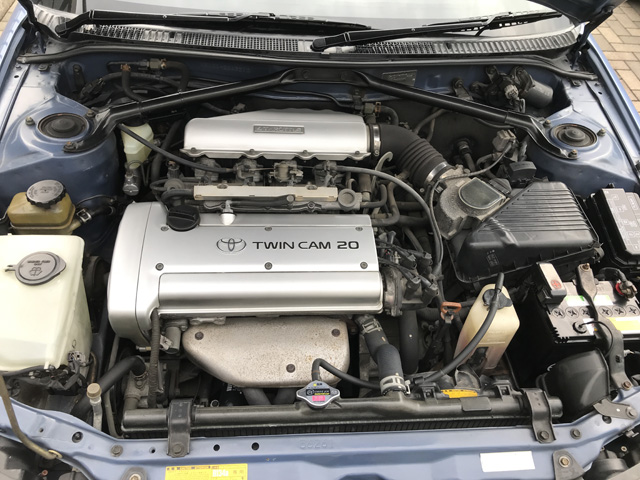 20バルブの4A-GEです。トヨタの名機ですね。気持ちよく回り、扱いやすいエンジンです。が!これ、ハイオク仕様なんですよ!