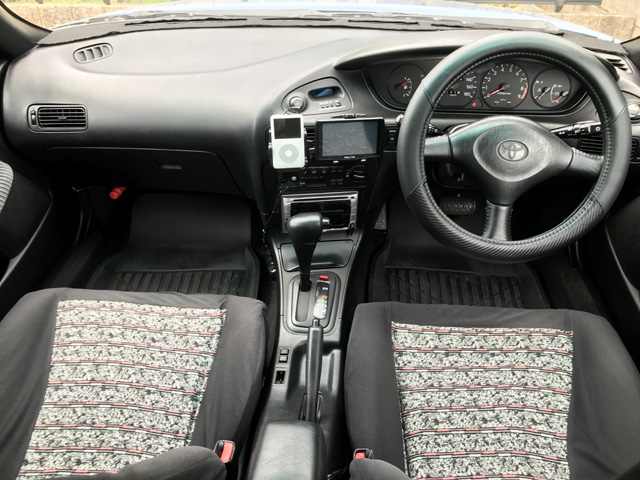セレスの前席です。複雑なデザインのダッシュボードをはじめとするセレスの内装は、レビンと共通です。私のG Typeはスポーツシートです。長距離乗っても疲れを感じません。かなり出来の良いシートです。 |