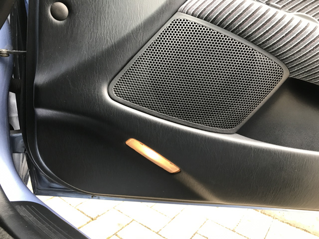 フロントドアカーテシランプです。エクストラパッケージを選択すると装着されます。ドアを開けたとき地面を照らす……今の車では当然の装備ですが、この当時は画期的だったのです。 |