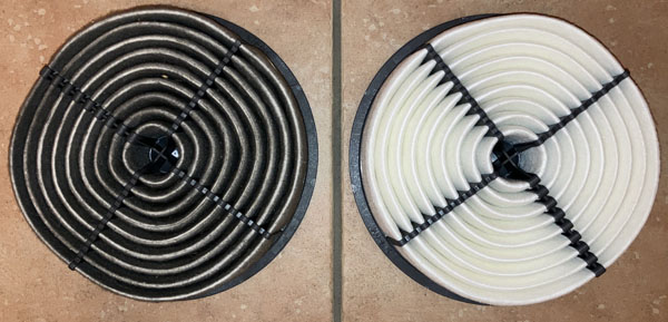 これがエレメント。エアクリボックスに入っていたものが左、購入したものが右です。このエレメント、在庫がかなりあるとのこと。いつもなら予備を買うところですが、今回は1個だけにしました。