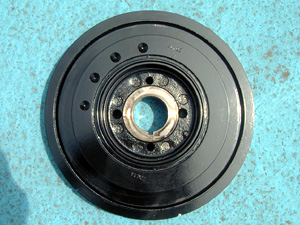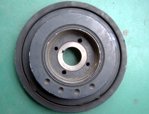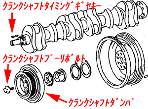 あまり聞き慣れない部分ではありますが、大体15万キロ位を目処にダメになる部分です。これは何かと言いますとプーリーです。プーリーの部分は金属とゴムブッシュのような物でできています。このゴムの部分が劣化し、亀裂が入りプーリーが落ちます。落ちれば当然走行は出来なくなります。うちの車も15万キロ間近なのでプーリーが落ちる前に交換することにしました。