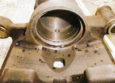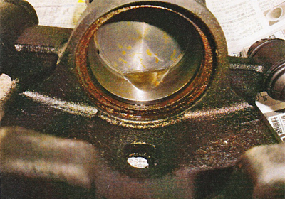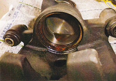 これが古いピストンです。ピストンについている汚れのようなものが錆で、ここで引っかかって動かなくなっていたようです。