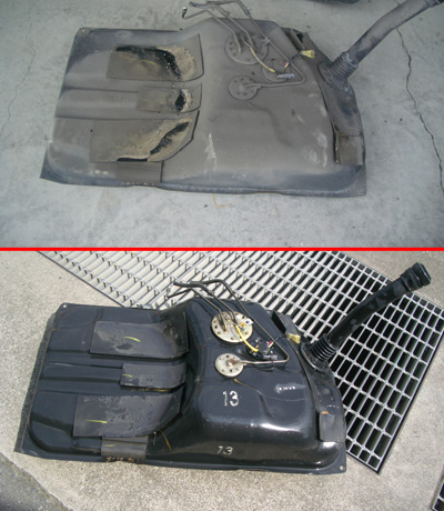 下ろしたタンクです。これまた汚い・・・ こんな時しか掃除できないのできれいにしましょう。 |