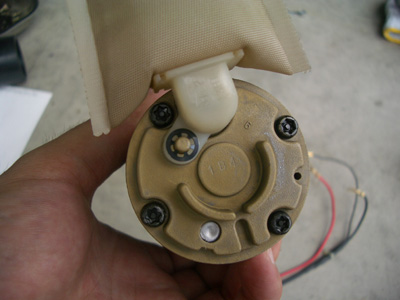 外した純正?ポンプです。なんか純正とちょっと違うようなきもしないでもないが・・・ |