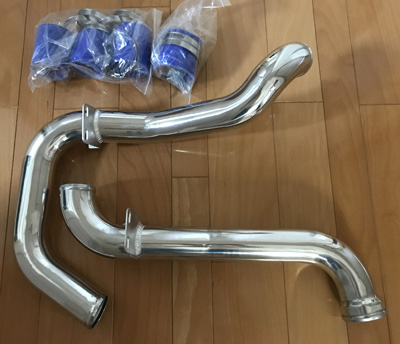 これが今回購入した、マーシーオートのインタークーラパイピングキットです。とても軽いですがしっかりしています。これは見た目もかなり良くなるぞ!ヘ(^o^)/ |