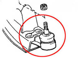これが新品のロワーボールジョイントです。だいたい10万キロ、10年を目安に変えた方がいいかもしれませんね。 |