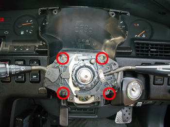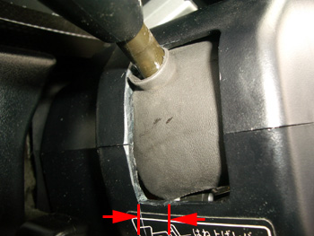 ということで配線終了。コラムを元に戻して?!\(◎o◎)/! レバーが干渉してカバーが付けられない・・・なので、コラムカバーを少し削りました。5mmくらい削ったでしょうか。 |