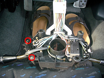 スープラのユニットを外したところです。次はワイパーレバーを外します。赤丸内のねじ2本を外します。 | |||||||||||||||
