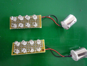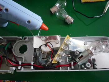 ソケットを取り付け、LEDの実装された基板をホットボンドで固定します。 |