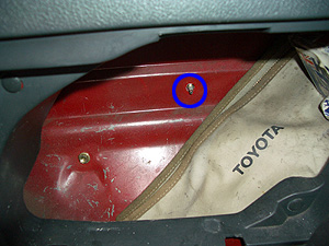 左側の残りの1本です。ジャッキが入っている部分の内装カバーを外すとこのねじが見えます。 |