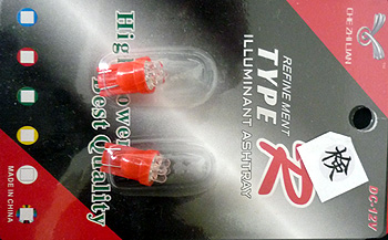 | これが今回購入したLED。怪しい感じが否めません。「R」の形、どこかの車のエンブレムと同じでは?!(笑) | |