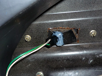 | こんな感じで溶けていました。これは左側です。右側はアンテナのユニットがあり、かなり面倒ですが、幸い右側は溶けていませんでした。ε-(´∀`*)ホッ | |