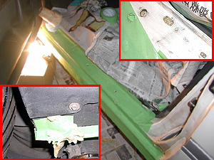 次にサイドシルのカバーを外す。70の場合、比較的大きな穴が4つほど開いているので作業は楽だと調べはついていたので安心安心。実際にカバーを取り外して見ると大きな穴の他にも小さな穴も開いている。透明のテープを張ればマスキングしたまま発泡状態を確認出来るのはありがたい。やらなかったけど(笑)カバーに共締め?で室内側のカーペット(上に置いてあるものではなく、全体に敷き詰められている方のカーペット)の端部がある。これは引っ掛けるような感じになっているので、これを外して内側を確認する。どちらかのHPに、これを外して中もマスキングしないと内側に漏れたウレタンがタンクコックレバーやトランクの開閉レバーを強化してしまい、使用不可の状態にしてくれるらしいという悲しい噂を聞いていたのでしつこい位にカーペットの裏側を見た。すると結構大きな穴が数箇所(忘れました)空いていた。これにもテープを止めてマスキング。私はシートは外さなかったのですが、スープラは大丈夫そうです。マスキングも終わり、しつこい位にワックスを掛ける。もうここまで来ると大仕事を終えたような満足感。もう良いかな?って感じ。いやいや、大事なことはまだ何もやってない。 |